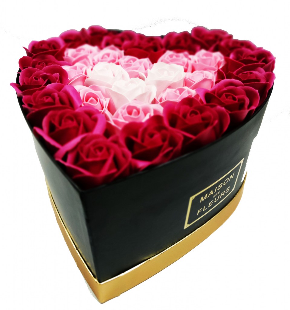 - Pachet cadou cu 31 trandafiri din săpun roz și albi AC-R31324 inimă neagră
