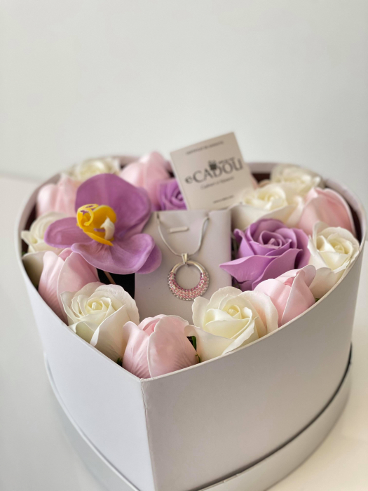 - Aranjament floral cu 17 flori din săpun SC-R147-M2 și colier „Expensive HERT” alb cu cristale