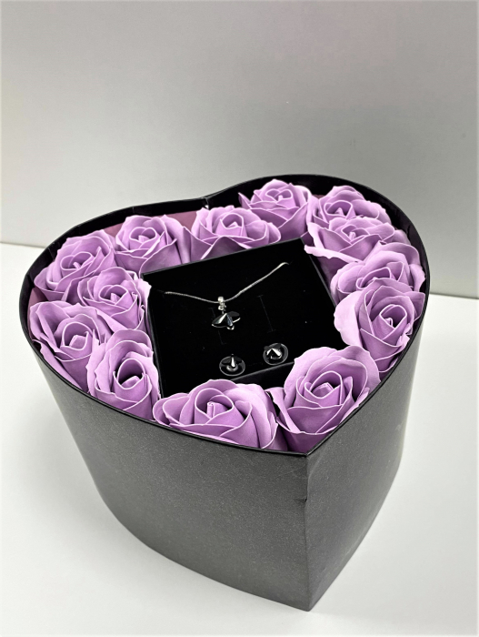 - Aranjament floral cu 29 trandafiri din săpun DR29TG-M1 și Set bijuterii SWEET LEAF purple cu cristale
