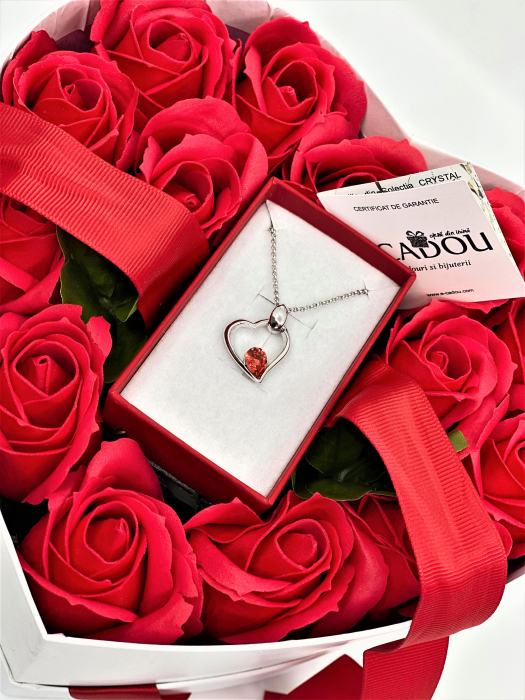 Aranjament floral cu 15 trandafiri din săpun SC-R13T-M3 și Colier Expensive Heart roșu