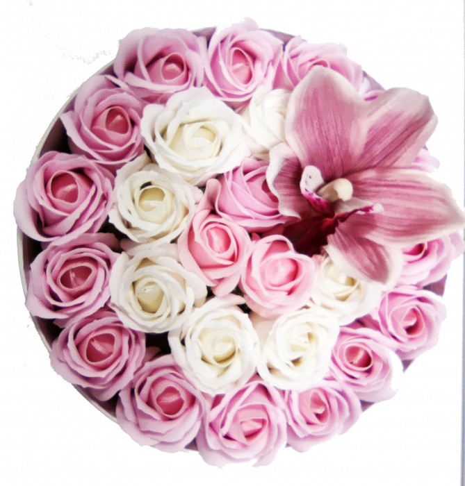 - Aranjament floral cu 27 flori trandafiri și orhidee din săpun, SC-R139_M1