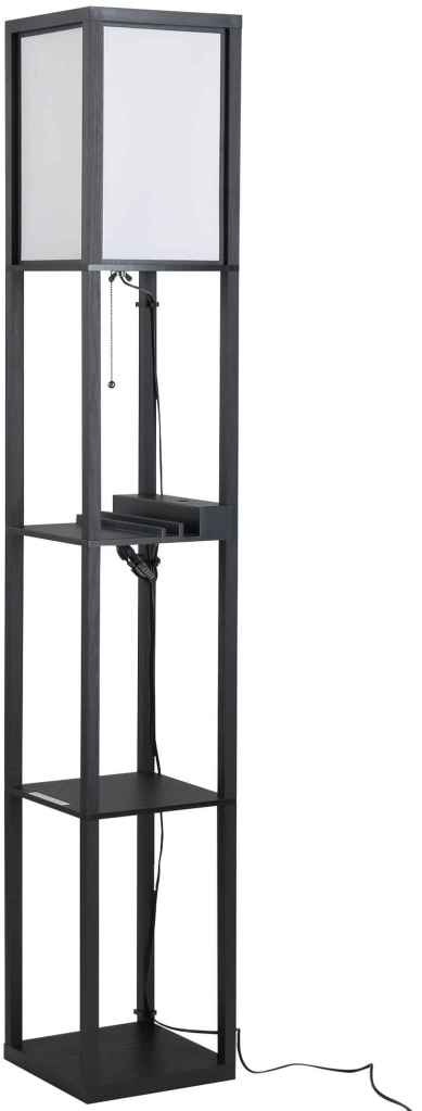 Homcom Lampă de Podea Design cu 3 rafturi și 2 porturi USB Becuri E27 Albe 26x26x160cm – Construit cu panouri din MDF, acesta este echipat în partea de sus cu un bec cu un abajur de țesătură înalt de 39 cm și 3 rafturi pe care le puteți utiliza pentru a aranja rame, cărți, vaze și plante.
