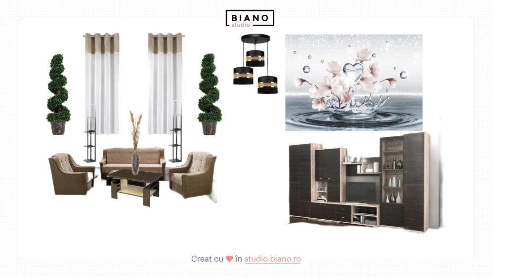 Pentru că sufrageria noastră trebuie reutilată complet cu decor atractiv care să ne determine să petrecem timp plăcut în încăpere, iată proiectul pe care am reușit să îl realizez pe singurul site de mobilier și decorațiuni la care am întâlnit astfel de funcționalități, biano.ro, filtrând tipurile de produse, culoarea, prețul, stilul și multe altele, iar dacă eu am putut să fac asta din prima încercare fără să am cunoștințe în domeniu, cu siguranță vei reuși și tu până la sfârșitul acestui articol în care îți voi împărtăși tot ceea ce am învățat utilizând Biano Studio: