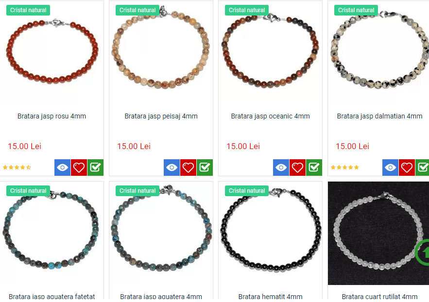 Mă interesează să îmi fac o colecție de bijuterii din pietre semiprețioase cu rol de protecție, creativitate, dezvoltare, sănătate și cu mult mai multe proprietăți binefăcătoare, iar dintre cele pe care le-am văzut în acest magazin online observ că mă interesează cam toate: coliere, cercei, brățări, brelocuri atât pentru semnificația fiecărei combinații de pietre în parte despre care te sfătuiesc să te informezi pe site, cât și pentru faptul că prețurile sunt pentru toate buzunarele, pornind de la valori foarte reduse.