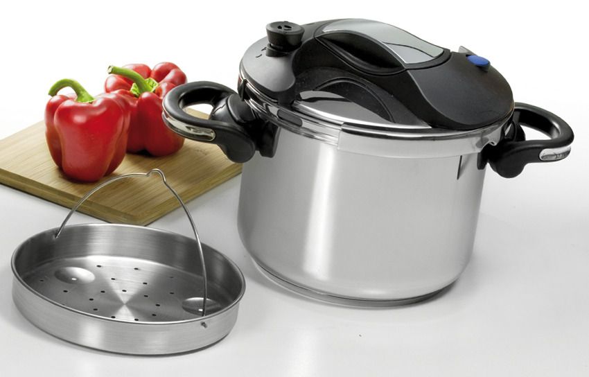 Nu am ratat ocazia să selectez o oală sub presiune din inox și silicon pentru că deși mama mea a folosit și folosește în casă de când mă știu eu un astfel de vas, totuși nu mi-am cumpărat niciodată unul gândind că nu am nevoie. Acum sunt de altă părere pentru că presupune economie de timp, nu trebuie să ne petrecem viața prea scurtă oricât ar fi de lungă stând cu oalele în brațe pe aragaz și amestecând ore în șir, atât timp cât o oală sub presiune știe singură ce are de făcut într-un timp record.