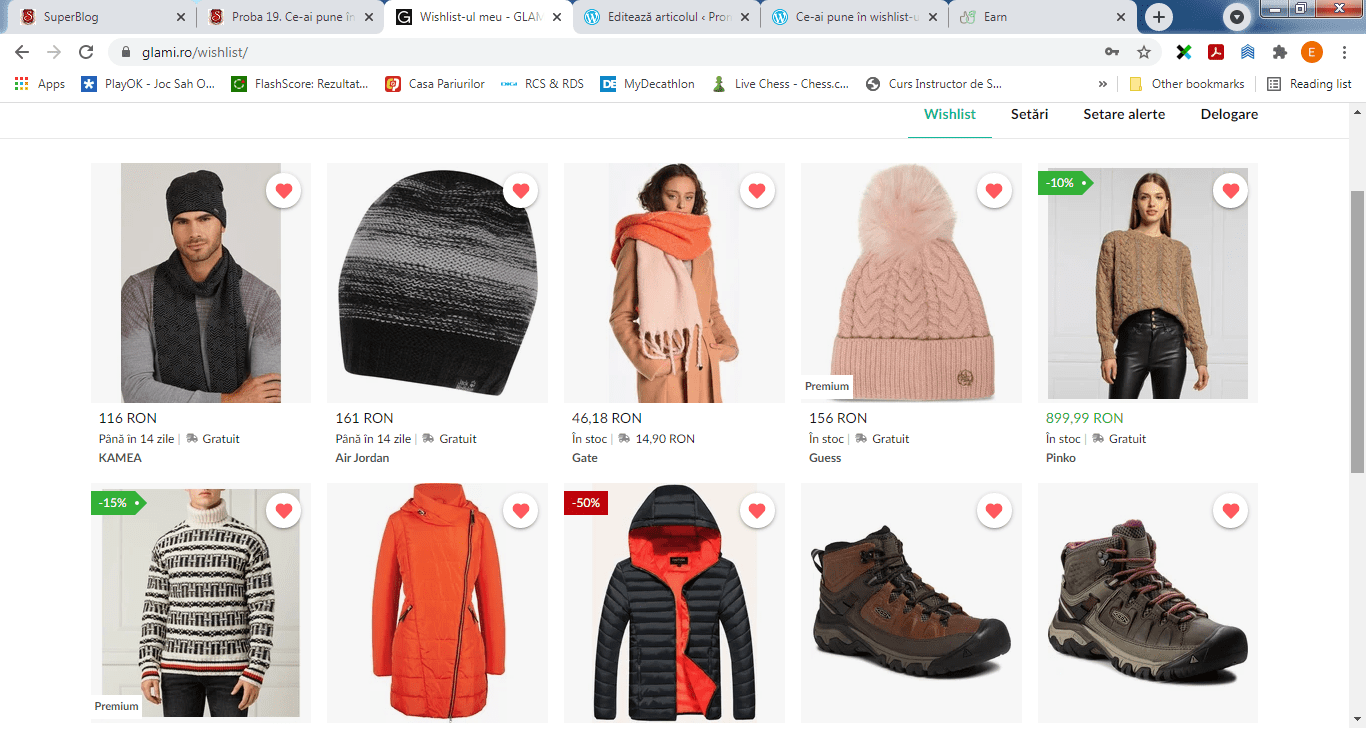 Acum pot să stau liniștită pentru că m-am înregistrat pe glami.ro, am adăugat în lista mea de dorințe produsele pe care le am în vedere la următoarele cumpărături online și, pentru că am activat notificările, Glami îmi va trimite mesaje în adresa de e-mail când produsele din wishlist-ul meu de pe site sunt la promoție ca să le cumpăr atunci când prețurile lor sunt reduse la valori considerate acceptabile pentru mine.