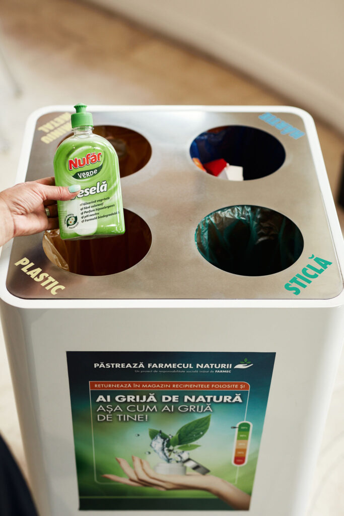 În același mod selectiv, dar mult mai elegant, a organizat și compania Farmec colectarea deșeurilor provenind de la ambalarea și comercializarea produselor proprii, separat pentru aluminiu și metal, plastic, sticlă, hârtie în magazinele fizice Farmec și Gerovital din toată țara.