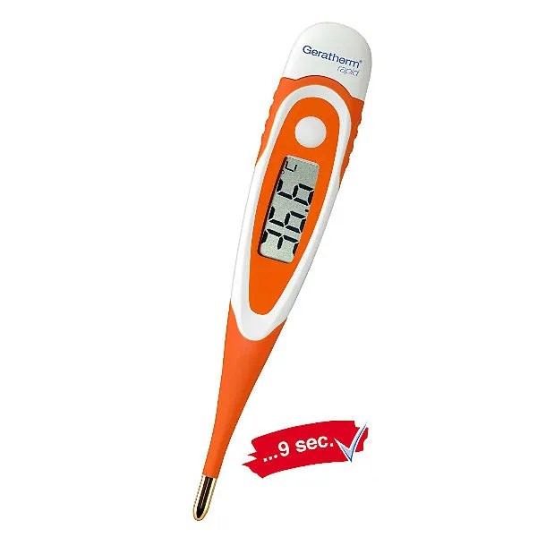 Cu un timp de măsurare foarte scurt în funcție de zona unde se alege luarea temperaturii, termometrul Geratherm Rapid este un termometru digital antialergic cu vârf aurit, rezistent la apă, cu înaltă acuratețe, pretabil și pentru măsurarea temperaturii copiilor datorită faptului că are vârful flexibil.