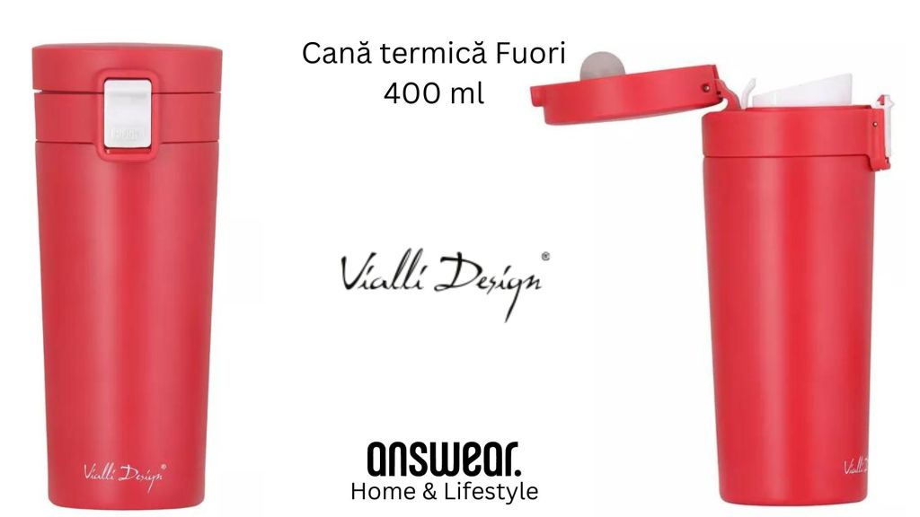 Un ceai din plante medicinale sau fructe, o cacao neagră cu lapte, o ciocolată caldă, un capucino mare sau o cafea neagră proaspăt măcinată și preparată în casă sunt doar câteva idei care oferă momente de răsfăț. Important este ca, pe oricare dintre aceste băuturi pe care le-am alege să le savurăm, să ne fie servite în recipiente bucătărie frumoase, să fie calde sau fierbinți, să ne dea instantaneu o stare interioară de bine și să ne încălzească. De aceea mi-a stârnit interesul produsul Vialli Design Cana termica Fuori 400 ml.