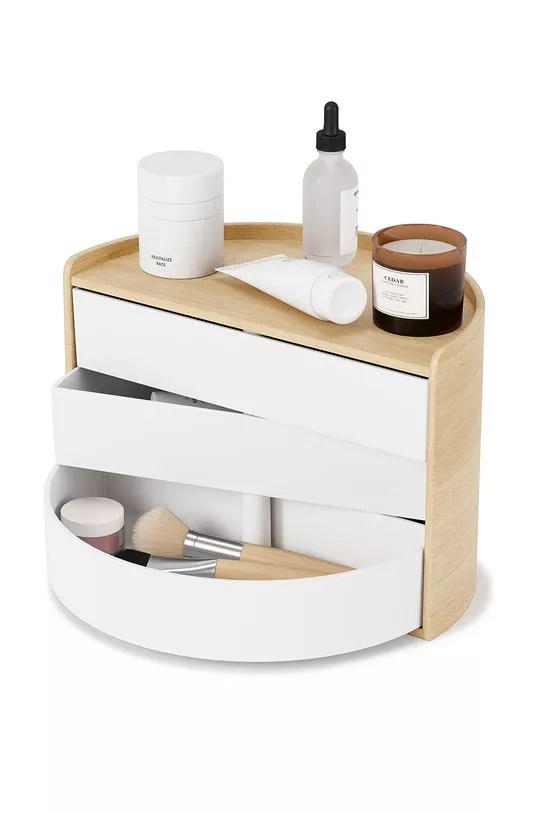 Fie că îl folosim ca să înlocuim alte organizatoare bijuterii, pentru depozitarea produselor cosmetice, sau a celor de la biroul amenajat în locuință, așa ca în imagini, acesta își poate găsi locul potrivit pentru dimensiunile de 15 x 26 x 19 cm. Dacă este la fel de încăpător ca în fotografii, atunci mă bucur că l-am găsit acum când codul LOVE îi reduce -20% din preț.