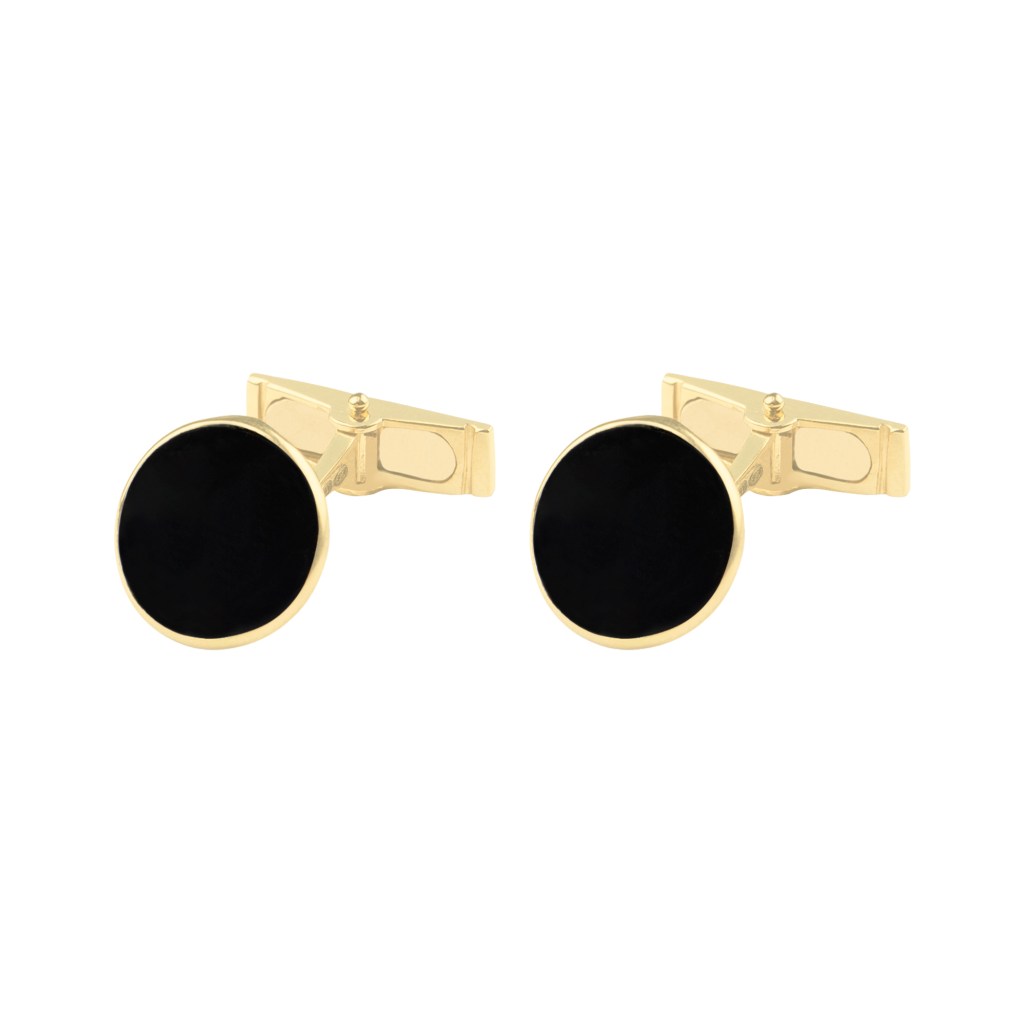 Butoni unisex, aur galben 18 K, piatra Onix pentru soțul meu