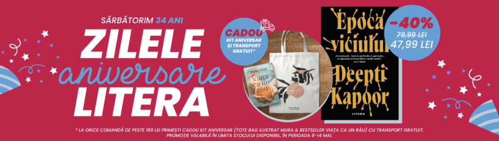 Dacă te grăbești puțin, până în data de 14 Mai 2023, poți să o primești cadou de la Editura Litera pentru orice comandă cu valoare mai mare de 169 lei plasată pe site-ul litera.ro. Fie că o primești cadou, fie că ți-o cumperi cât timp mai e valabilă oferta de lansare cu prețul redus cu -35%, fie ulterior la preț întreg sau cuprinsă în alte promoții, cartea merită citită și poate fi deveni cadoul potrivit pentru o persoană dragă ție.