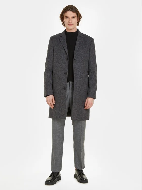 Stilul clasic, minimalist, care caracterizează în principal creațiile Calvin Klein și-a pus amprenta pe paltoanele bărbătești din lână. Croiala este regular fit, închizătoarele utilizate sunt nasturii la un rând, lungimea este deasupra de genunchi sau în zona genunchiului, în funcție de înălțimea bărbatului care îl poartă.