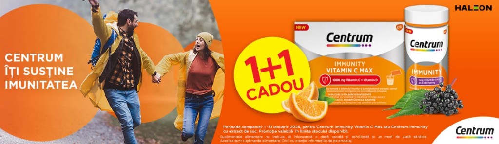 - Achiziționează un produs CENTRUM IMMUNITY CU EXTRACT DE SOC cutie cu 60 CPS MOI și primești gratuit încă unul. Prețul produsului este de 44.99 lei.