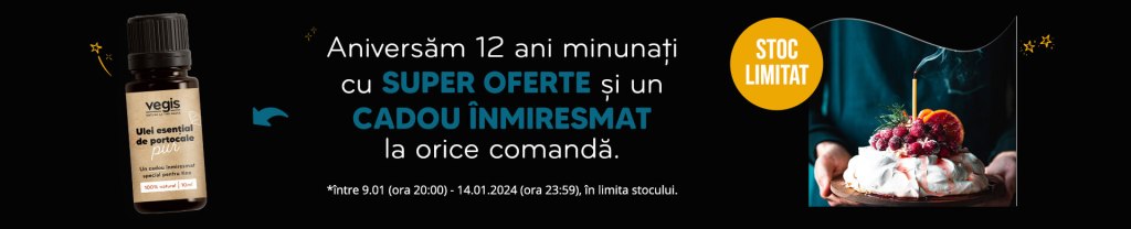 - ❤️🥂12 Ani de Vegis!❤️ Reduceri de prețuri la sute de produse și CADOU Ulei esențial de portocale pur Vegis (10 ml) la orice comandă!