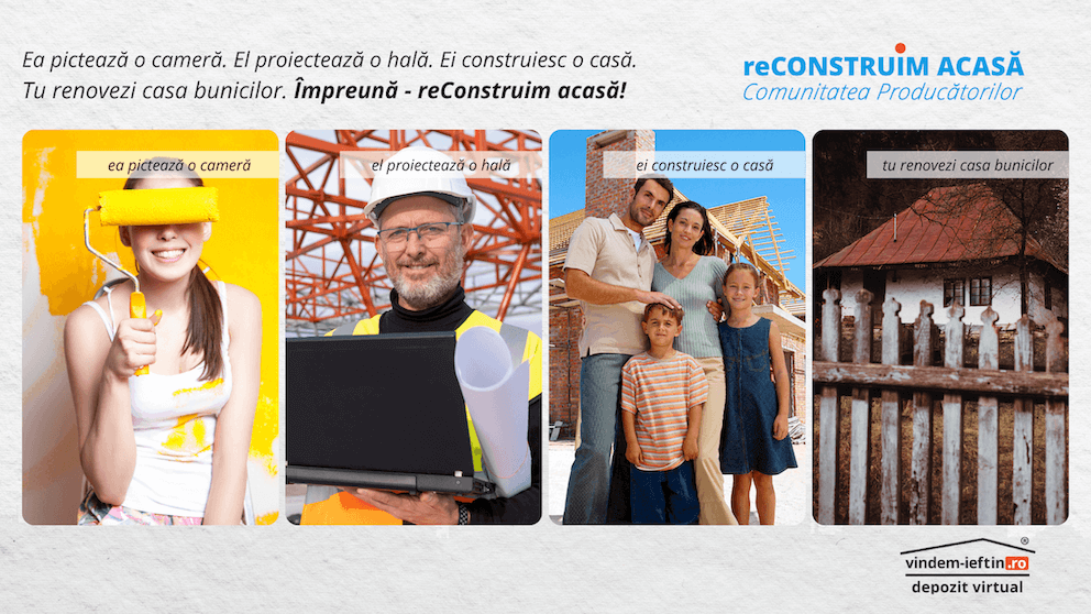Pe parcursul derulării campaniei ”reConstruim acasă” inițiatorii vor pune la dispoziția noastră, a consumatorilor din țară, dar și a migranților care doresc să se întoarcă acasă, materialele de construcții cu livrare din fabrici direct pe șantiere. Puterea unei comunități care își reconstruiește țara se va vedea și în prețurile mici pe care Depozitul Virtual vindem-ieftin.ro se angajează să ni le negocieze și să ni le obțină de la producători, datorită multitudinii comenzilor și a cantităților mari ce vor fi comandate.