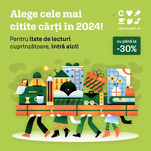 Invitație la lectură în 2025: o selecție consistentă, alcătuită din cele mai citite cărți în 2024, în limba română și limbi străine, care, în perioada 3-16 ianuarie 2025, te întâmpină cu până la -30% reducere la Cărturești