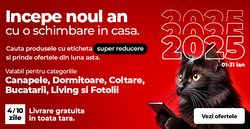 Fotolii, canapele, colțare, dormitoare, bucătării, mobilă living cuprinse în această promoție din luna Ianuarie 2025. Vezi care au prețurile reduse, observă ce anume îți lipsește sau ce te nemulțumește prin casă și completează-ți locuința cu mobilier nou.